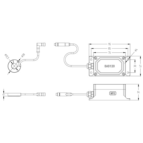 SAS120 采用超薄探头设计,适用于螺栓端面安装高度较小或者具有内六角孔的情况,比如风力发电机的叶根螺栓。
